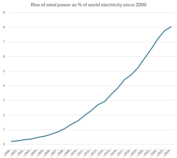 David, what you have written is fine as far as it goes, but seems to under-estimate the significance of the fact that, in attempting to substitute for all fossil fuel use, renewable energy is chasing a retreating target. From 2000 to 2019, global renewable energy (RE) generation grew at a very high rate. But, in 2019, fossil fuels still supplied 80% of global total final energy consumption (TFEC), THE SAME AS IN YEAR 2000. (By 2022-23, this had dropped to 78%.) This fundamental problem is not the fault of RE, which has grown beyond expectations in percentage terms, but is the result of growing TFEC. While RE has a higher growth RATE than TFEC, RE's absolute growth in EJ is still much less than TFEC's. Most of growth in TFEC is still fossil fuelled. While RE will overtake fossil energy EVENTUALLY, it cannot do this by 2050 while TFEC continues to grow. See my article: https://cleantechnica.com/2024/08/20/the-energy-transition-is-slowed-by-growth-in-consumption/